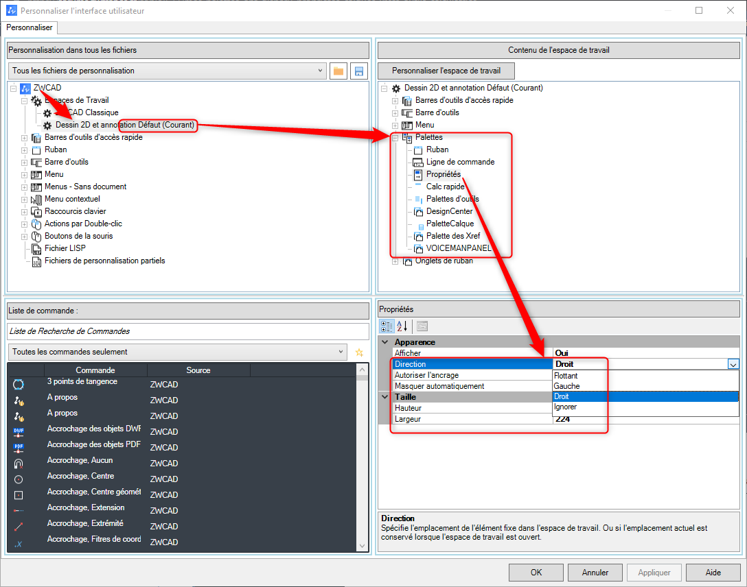 Dans le cas où le problème persiste, il faut donc nettoyer le dossier de personnalisation qui contient des positions des palettes. Ces fichiers sont recréés avec les réglages "usine" au prochain lancement de ZWCAD