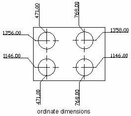Les cotes ordonnées mesurent la distance perpendiculaire entre un point d'origine appelé point de référence et une caractéristique, telle qu'un trou dans une pièce. Les cotes ordonnées sont constituées d'une ligne de repère avec une valeur X ou Y. Ces cotes sont appelées cotes de référence. La valeur X ou Y est calculée dans le SCU courant et les lignes de repère sont tracées selon la direction orthographique du SCU courant. Les valeurs de cote sont des valeurs absolues. En maintenant des décalages précis des éléments par rapport au point de référence, ces cotes permettent d'éviter l'accumulation d'erreurs.