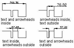 Vous pouvez également spécifier la disposition du texte de cote et des flèches à l'aide de la variable système DIMATFIT. Vous pouvez spécifier la manière dont le texte de cote est déplacé à l'aide de la variable système DIMTMOVE.