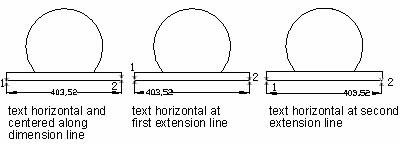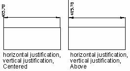 La justification et d'autres paramètres peuvent affecter l'alignement vertical du texte. Si vous sélectionnez Alignement horizontal, le texte situé entre les lignes d'extension et centré sur la cote est placé horizontalement, comme illustré dans la figure de gauche ci-dessus.