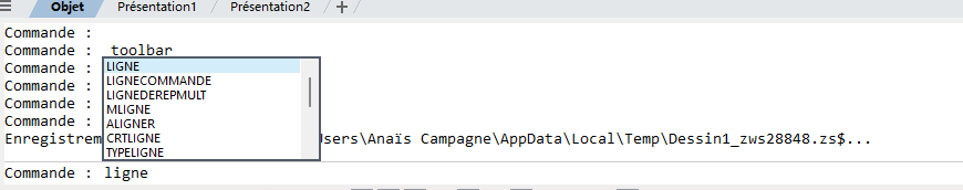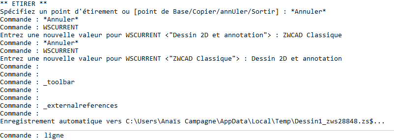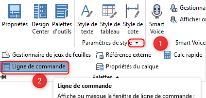 Outils-\Palettes-\Ligne de commande sur le ruban.