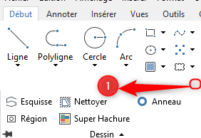 Lorsque vous exécutez certaines commandes ou sélectionnez des objets spécifiques, un onglet contextuel spécial du ruban apparaît dans l'interface ruban, remplaçant les barres d'outils ou boîtes de dialogues de l'interface classique. Cet onglet contextuel se ferme automatiquement à la fin de la commande.