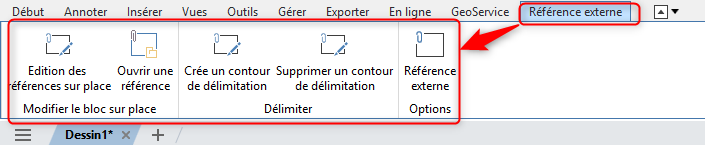 Onglet Référence externe du ruban contextuel