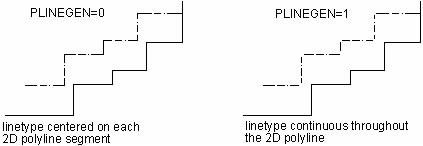 Pour les polylignes, vous pouvez utiliser la variable système PLINEGEN pour déterminer si un motif de type de ligne est centré sur chaque segment ou s'il est continu entre les sommets sur toute la longueur de la polyligne.