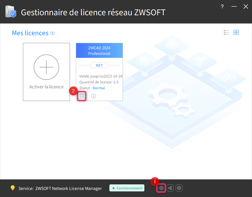 Une licence réseau ne peut pas être désactivée si le service de distribution de licence réseau est toujours en fonctionnement.
