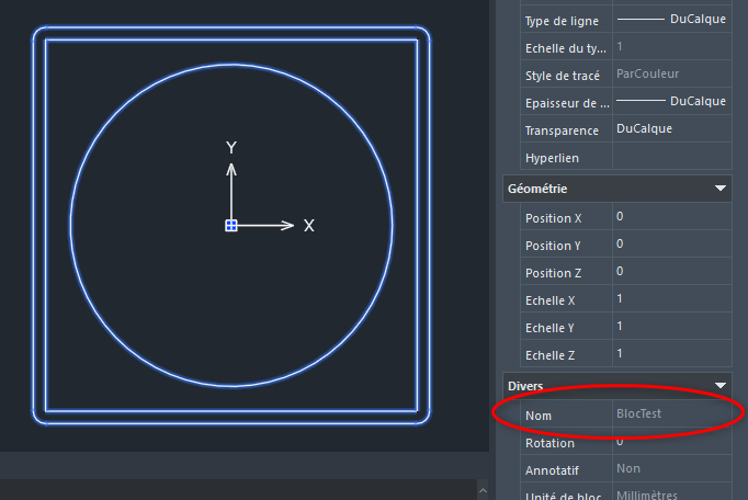 6️⃣ Relevez le nom du bloc depuis la fenêtre Propriétés.