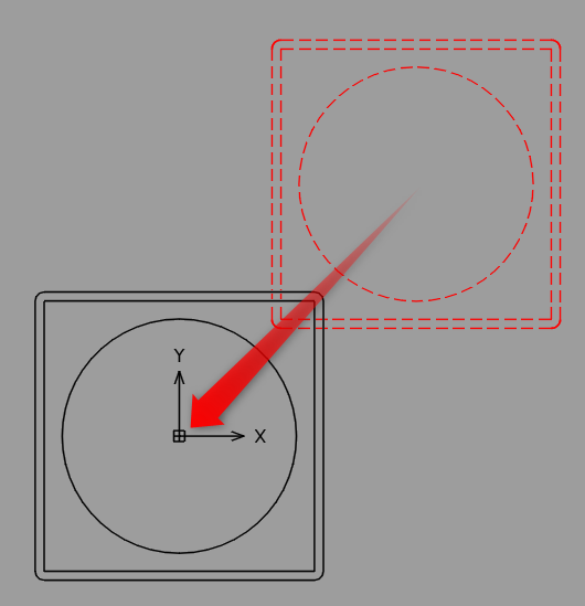 - soit en positionnant la géométrie par rapport à l’origine (la coordonnée 0,0 correspond au point d’insertion du bloc) ;